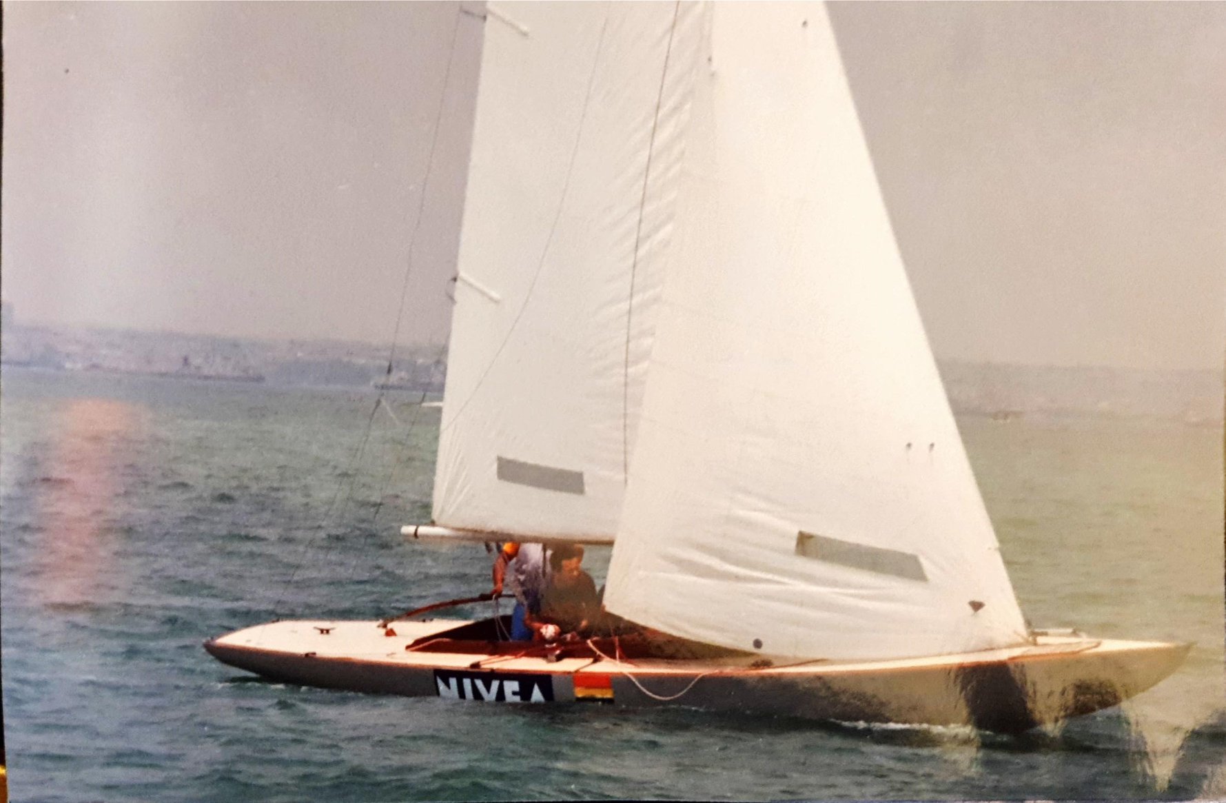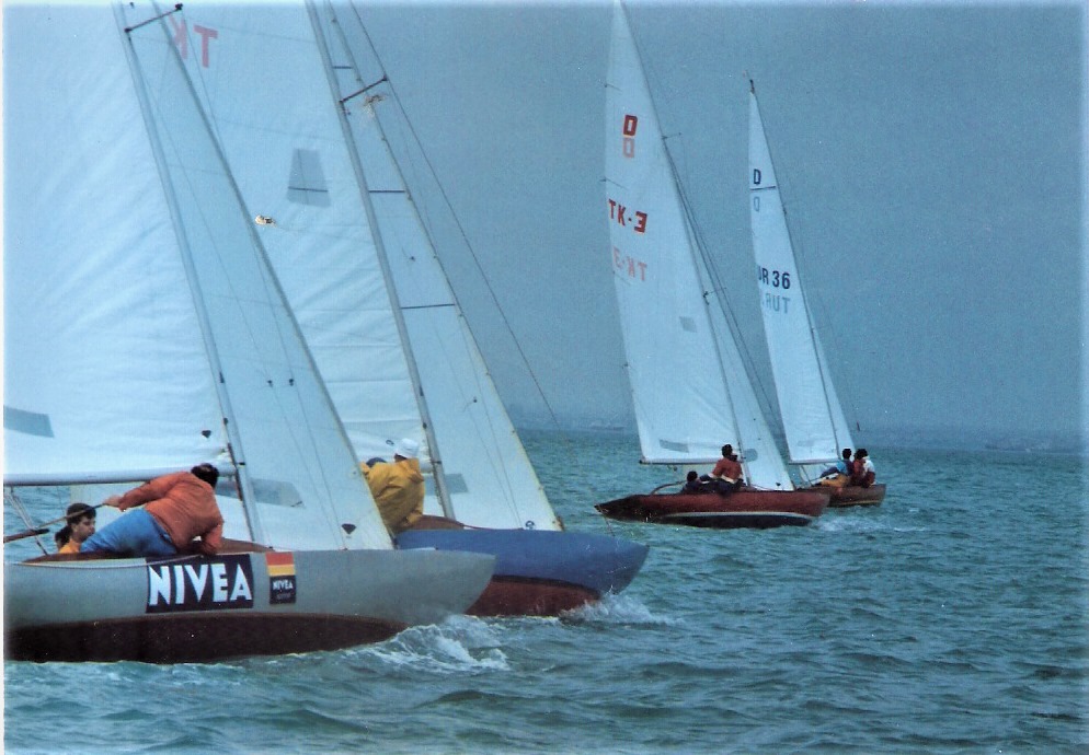 Muhtemelen 90’lı yıllar. Nivea TK 14 .Dümende Osman Özonur var. Öncesinde Hulki Oruz yarışırdı. Sonra bu tekneyi Rıfat Edin alıp Tuzla’ya götürdü. O zamanlar Danimarka Diamond marka yelkenler vardı sonrasında North sails satın aldı. North’un Dragon yelkenlerini hala Danimarka’daki bu loft yapıyor.