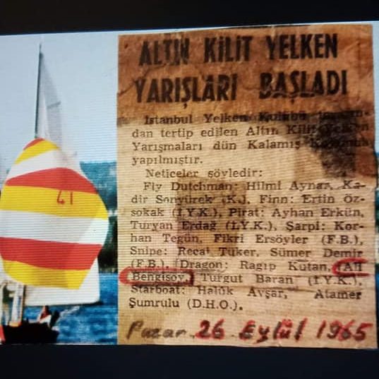 60’ların ikinci yarısından. Sayın Ali Bengisoy arşivinden. Kendisine teşekkür ediyoruz. İlk fotoğraf 1965 yılında İstanbul’daki bir yarış ile ilgili gazete kupürü. İkincisi Izmir’deki meşhur dragon şampiyonası. O zamanlar İstanbul’da 13 İzmir’de 8 dragon yarışırmış. Umarım İzmir körfez’den eski fotoğraflarda çıkar bu vesile.